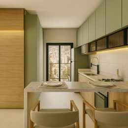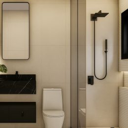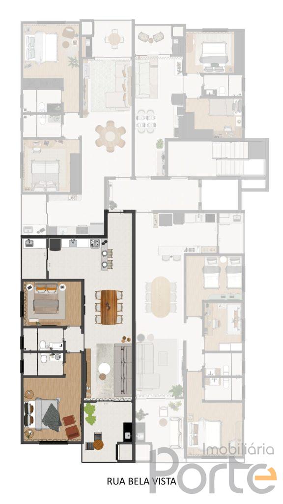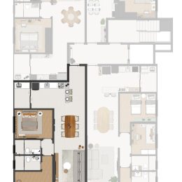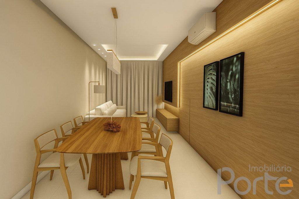 - Piso em porcelanato nas áreas sociais, proporcionando elegância e durabilidade, e piso laminado nas áreas íntimas, oferecendo conforto térmico e acústico.