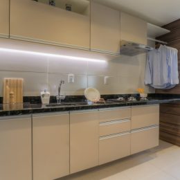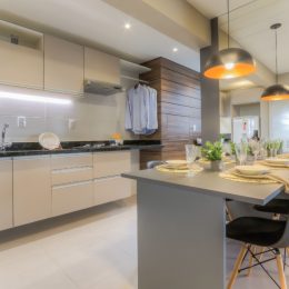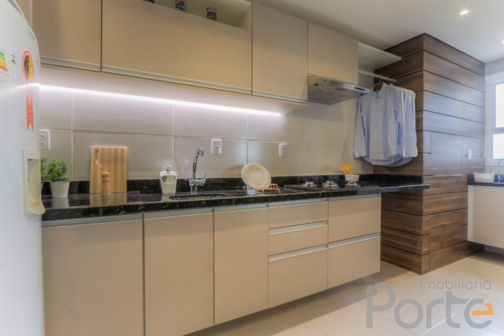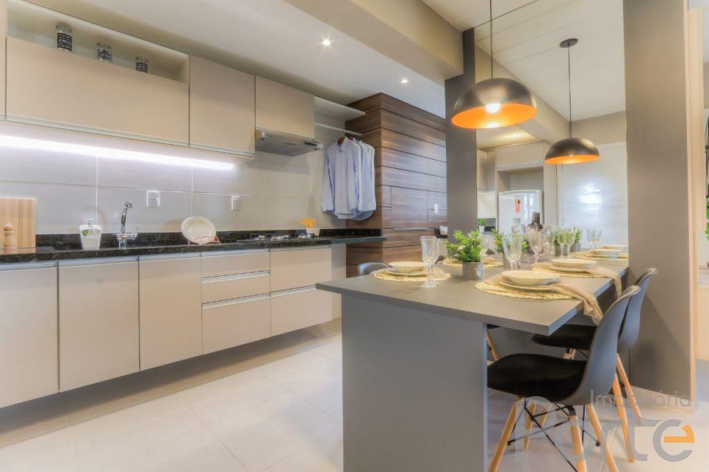 Cozinha e sala integradas, ambiente moderno e funcional, com churrasqueira: espaço ideal para momentos de lazer e confraternização com família e amigos.