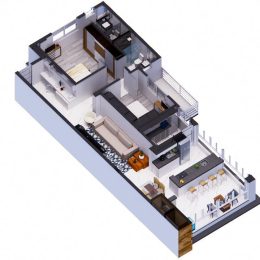 - Banheiro no meio;