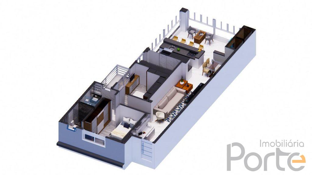 - Frente 2 apartamentos lado esquerdo com 1 suíte, lado direito com 2 dormitórios;