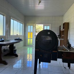 Cozinha com churrasqueira, e possibilidade de colocar um fogão a lenha;